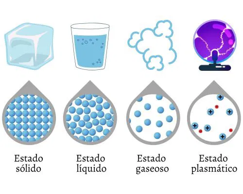 Esta materia se puede encontrar comúnmente en 4 estados, tres son muy conocidos, solido, líquido y gaseoso, teniendo al plasma como cuarto estado y el más abundante por amplia diferencia, siendo este estado en el que existe el 99% de la materia en el universo, si en el estado gaseoso apenas y hay fuerza que una a los átomos, en el estado plasma es directamente inexistente.